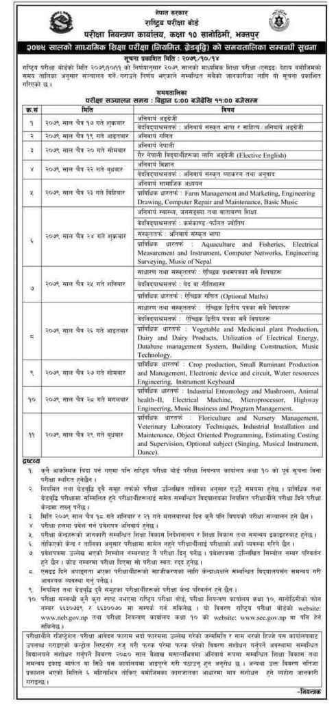 NOTICE: Secondary Education Examination (SEE) 2023